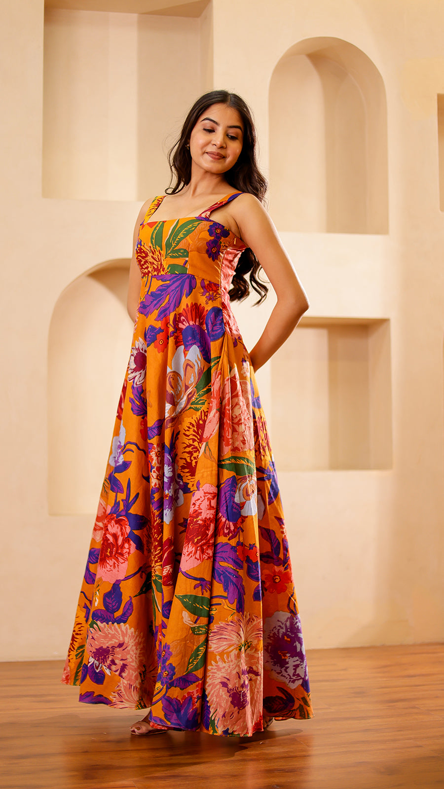 Mustard Floral Maxi Dress